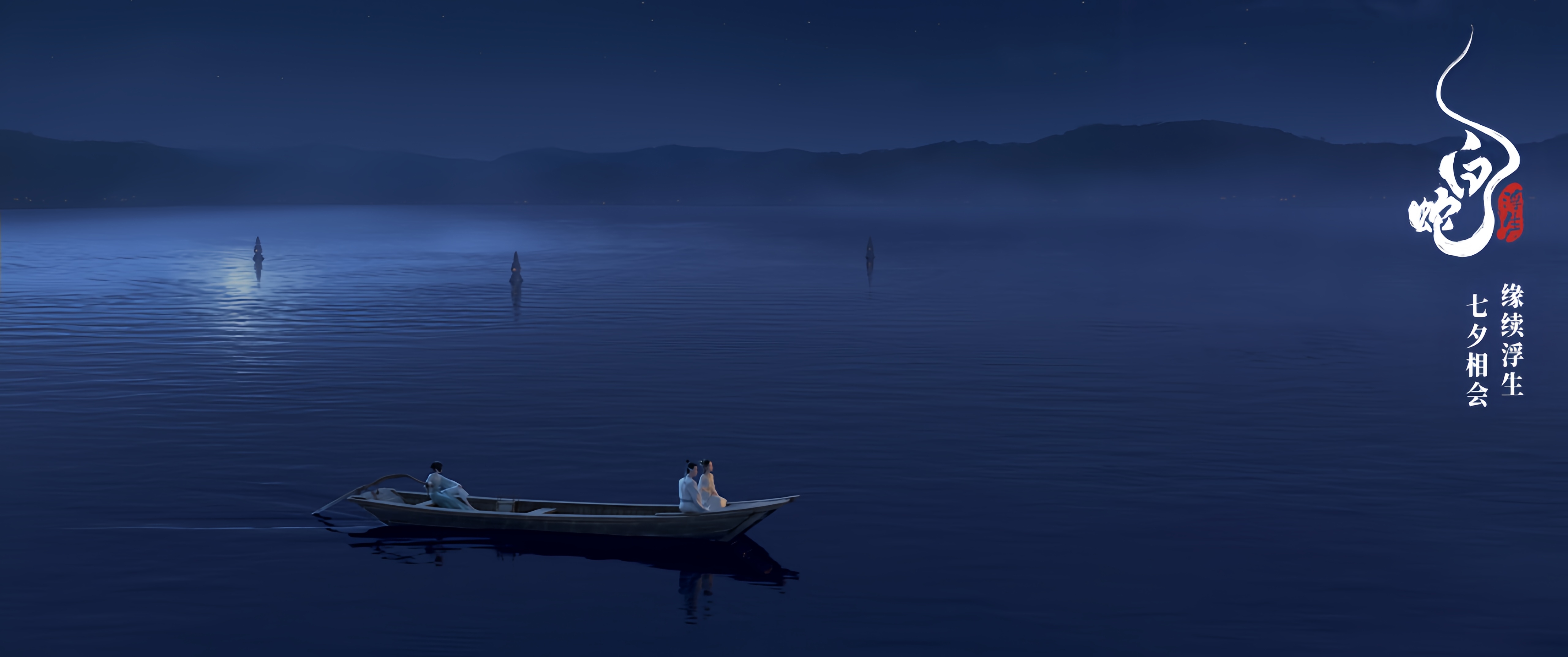 如果说上一部作品还打出了水漫金山这个IMAX卖点的话,本作在更多的场景上,都能看作是一个非常满足IMAX等巨幕的宏伟场景——月下的西湖,近处月光洒在湖面,远处杭州城里灯火阑珊,一艘孤舟,一双玉人,浮在这幅画上。